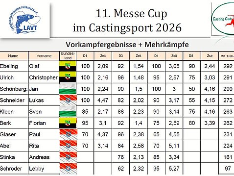 Bei jeder Zieldisziplin zählten die Ergebnisse der Vorrunde für die Mehrkampfwertungen.