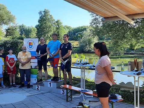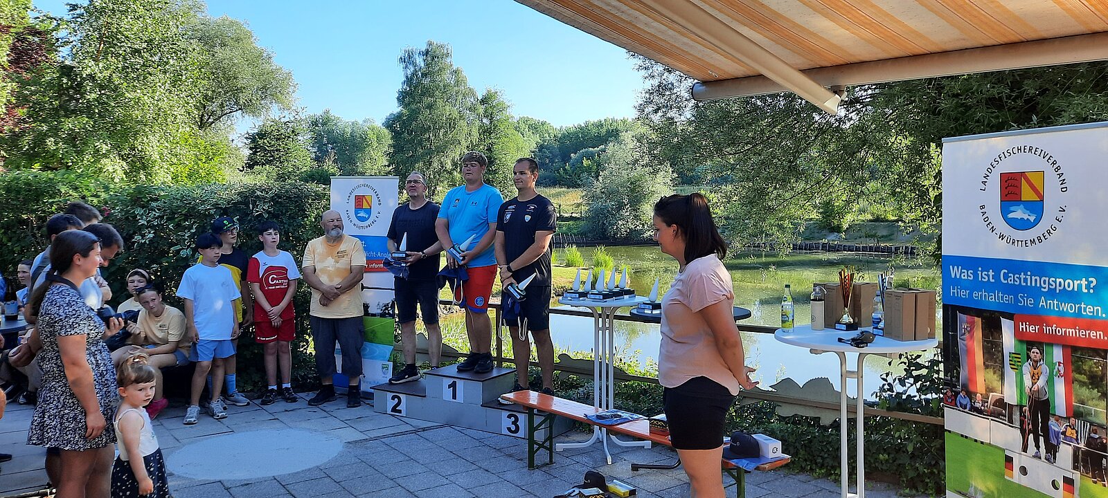 Nachdem sich alle in ihrer Unterkunft erfrischt hatten, fand dann etwas später die Siegerehrung am Anglerheim mit angrenzenden Baggersee und dazugehörigen Vereinsteich statt.